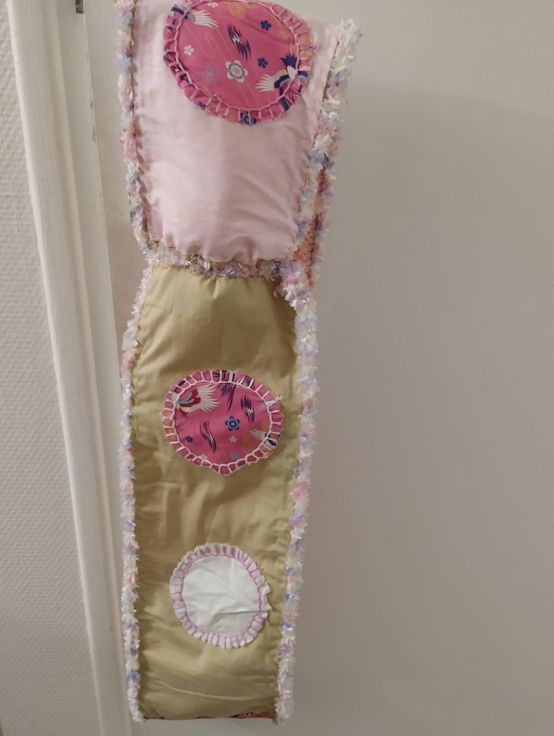 Beau tour de cou design rose poudré décoré version patchwork